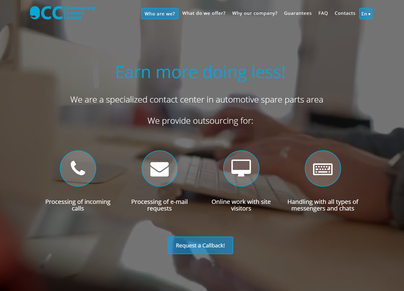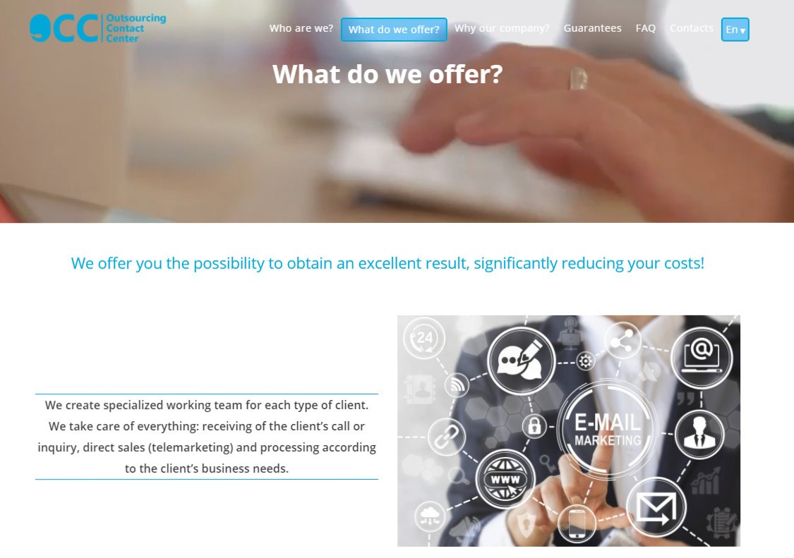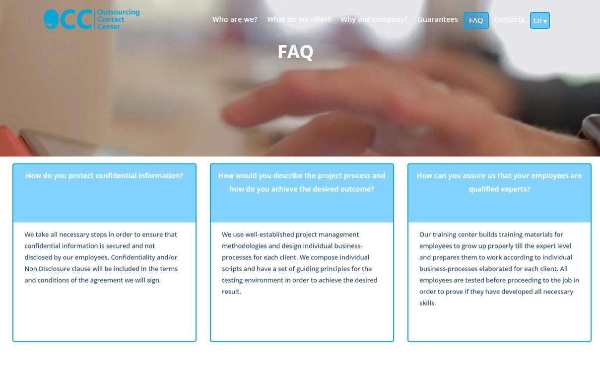 Using the latest modern web development technologies, ITWorks designed an interactive website for the professional Outsourcing Contact Center. The website perfectly delivers the main idea: clients can focus on their core business activities and improve their profitability with the help of Outsourcing Contact Center. Minimalistic design, user-friendly interface and easy navigation have become the success factors of this web application.